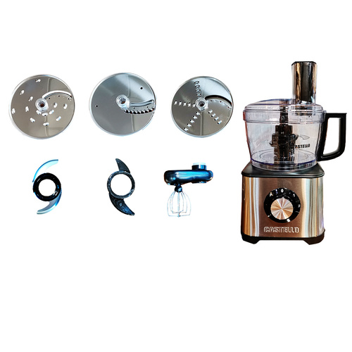 برند کاستلو زیر مجموعه شرکت دلمونتی بوده و یکی از بهترین و قدیمیترین تولید کنندگان لوازم خانگی میباشد غذا ساز کاستلو 1.5 لیتری بوده و قدرت موتور آن 800 وات میباشد این غذاساز دارای رنده در سایزها و مدل های مختلف میباشد و همچنین یک خرد کن و همزن و خمیر زن دارد این غذا ساز 2 سرعته بوده و عملکرد لحظه ای نیز دارد